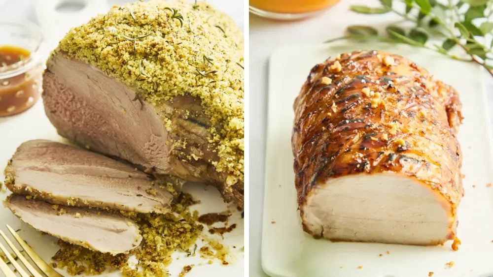 Honey Glazed Roast Pork with Walnut & Sweet Potato Puree