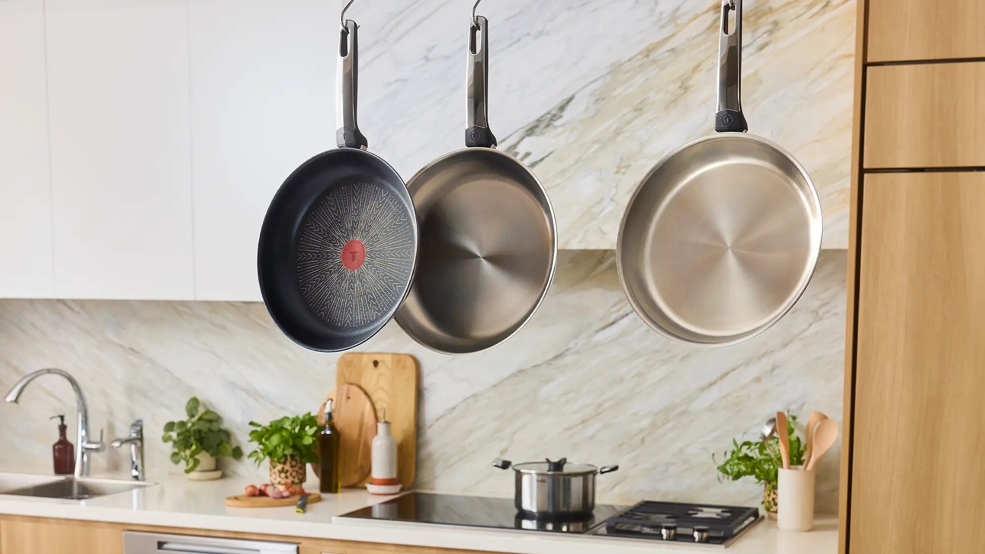 Experience Tefal Emotion+ cookware with innovative oil‑concentrating frypans, 5x longer‑lasting non‑stick, premium stainless steel and Space+ stackable design.