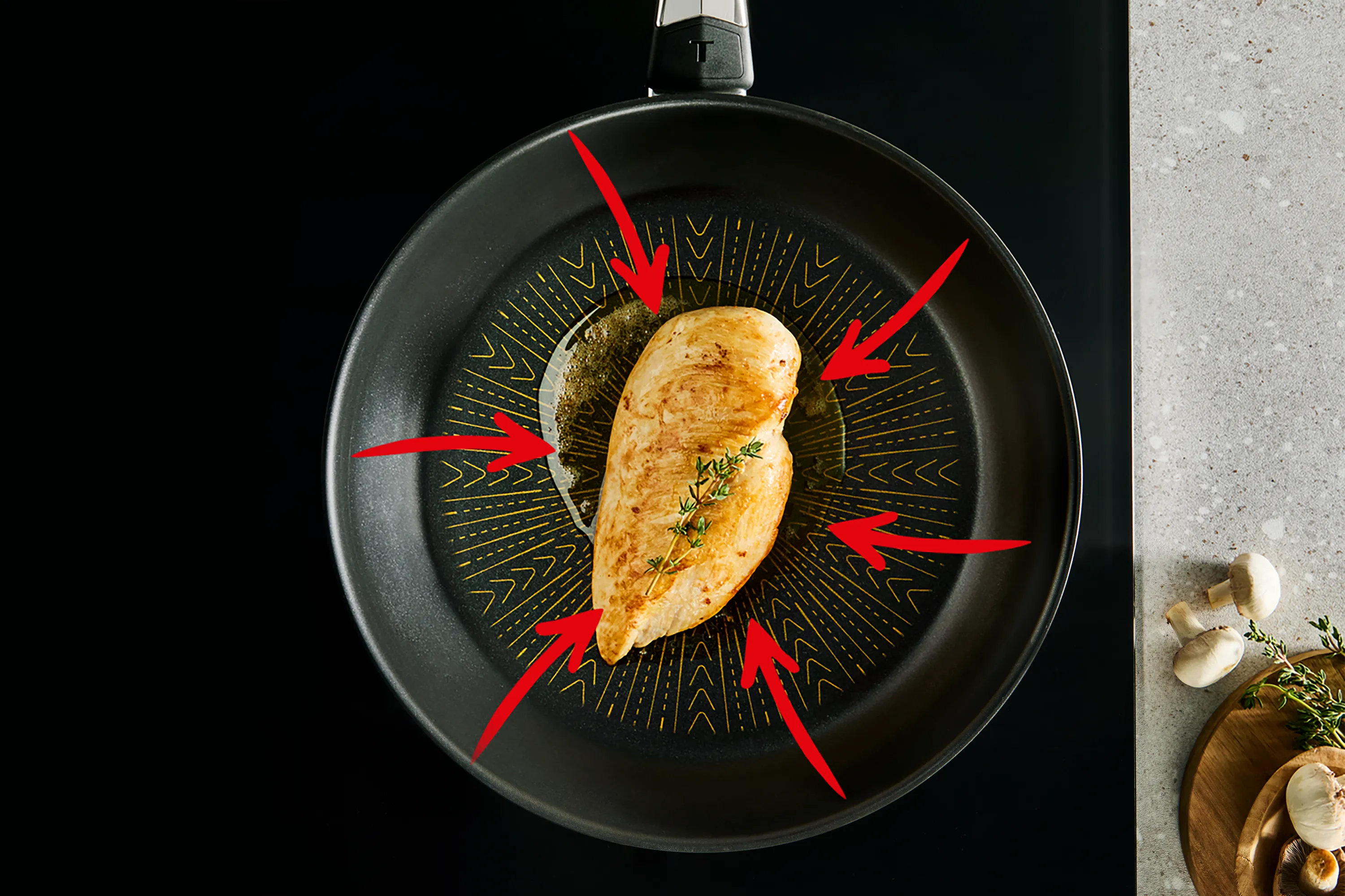 Emotion+ Flavors frypans are designed to have a gentle convex base which channels cooking juices and flavours to the center, for richer, tastier results.