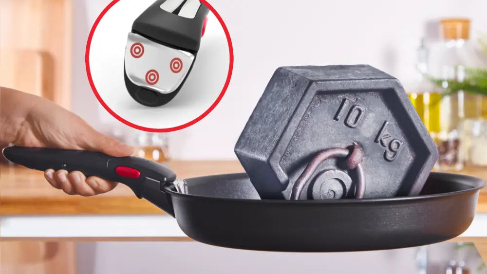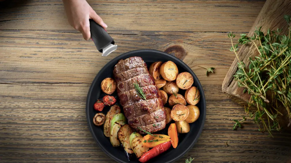 It all starts with the removable handle, a feature that enables compact storage, effortless cleaning and safe handling. It allows you to move seamlessly from stove to oven to fridge and even serve directly at the dining table with ease.