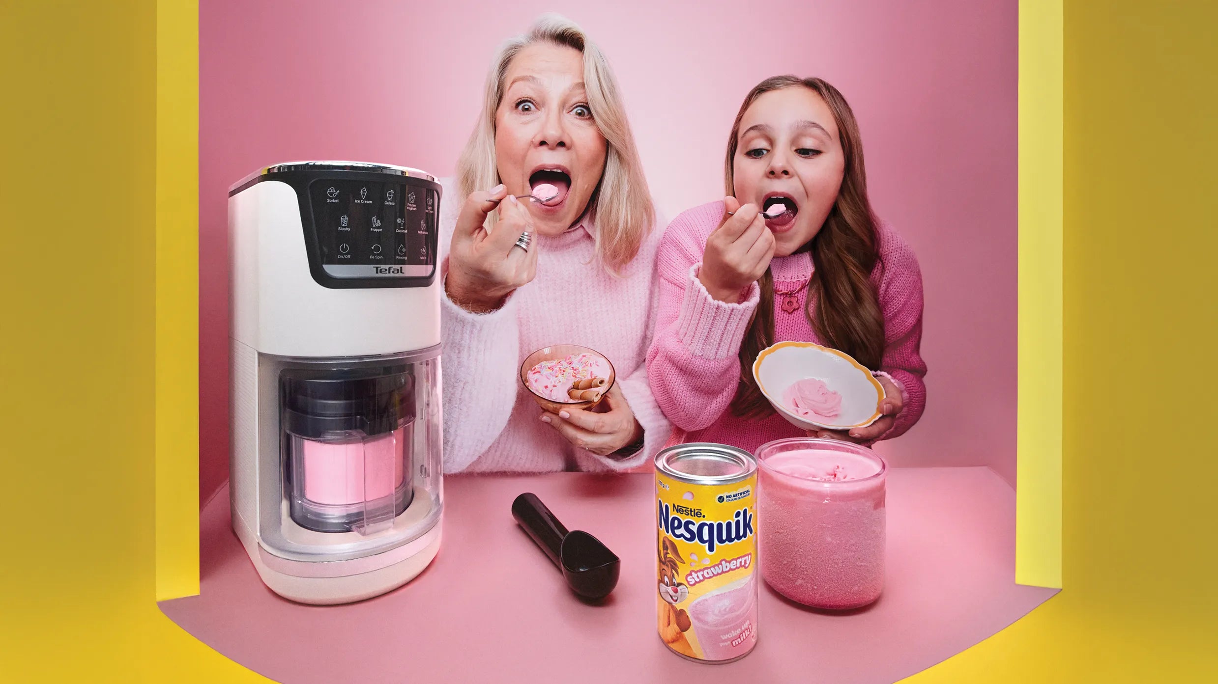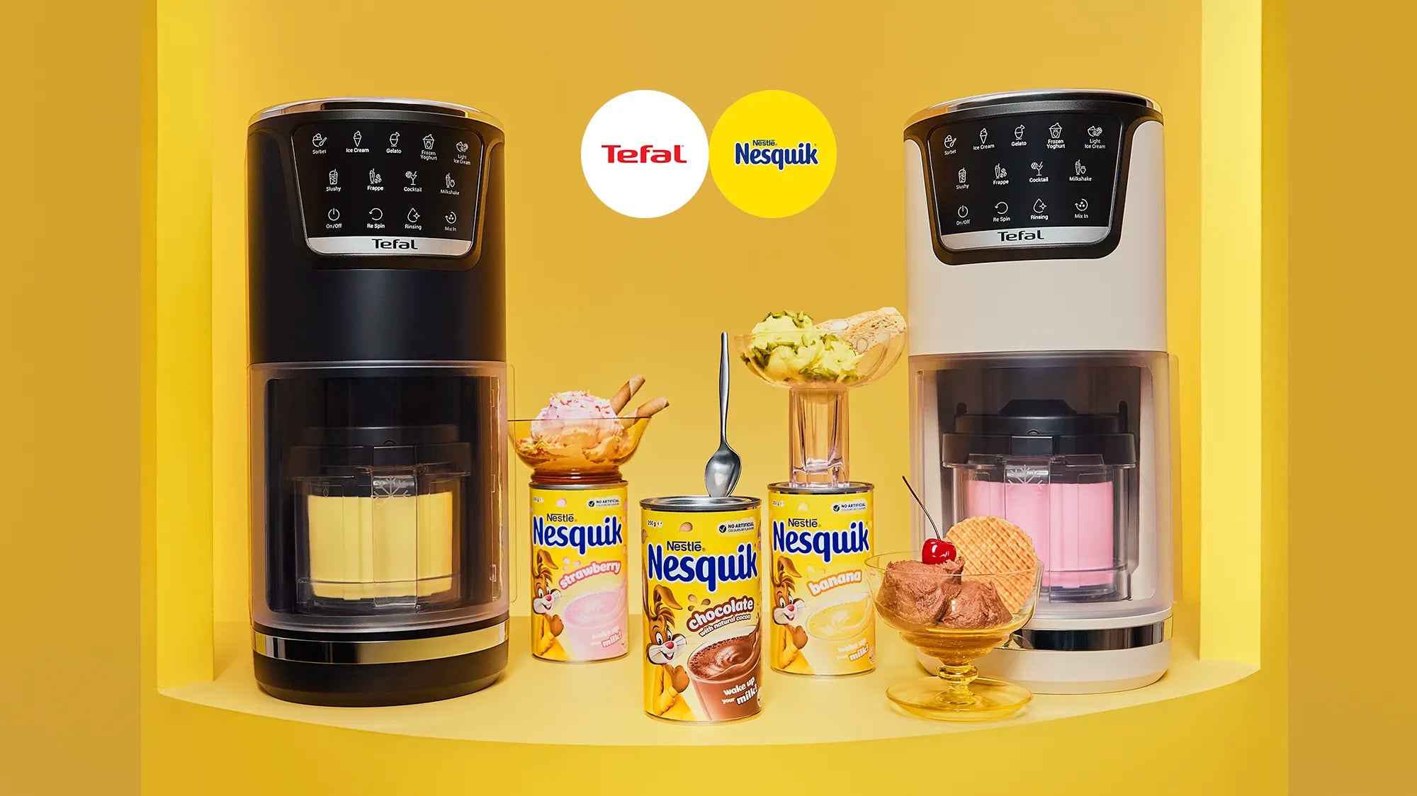 For its debut, Tefal has teamed up with Nestlé to bring Aussies the ultimate frozen dessert machine complete with three BONUS iconic Nestlé Nesquik tins: Strawberry, Chocolate & Banana.