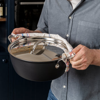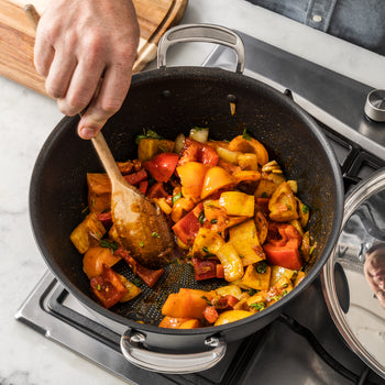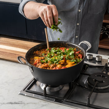 - MATERIAL - Super-durable hard anodised material that ensures the pan heats evenly, while staying non-stick. Easy to clean.