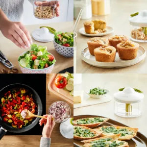 Preparing tasty recipes at home is now easier than ever thanks to the Tefal 5-Second Chopper—the simplest and fastest way to chop any kind of food down to the exact size you want in just seconds! From onions, herbs and nuts to vegetables, this manual food chopper offers perfect results made easy, with independent stainless steel blades ensuring efficient cutting results in no time.