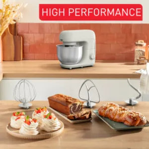 Delivering perfect results and generous enough to feed all your family and friends, Tefal Bake Essential has got you covered! This high-performance kitchen stand mixer promises perfect mixing in a large 4.8 L stainless steel bowl. From creams and meringues to pastry and bread doughs, its planetary movement and 800 W of power ensure smooth, homogenous mixing, while 6 speeds and a pulse function make operation effortless.