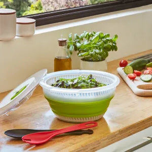 Experience unmatched convenience with an innovative collapsible design that saves up to 50% storage space while staying sturdy during use. * Compared to standard opened salad spinners.