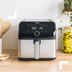 Easy Fry Mega fits extra-large cooking capacity into compact dimensions that save on space! Prepare enough for all your family and friends, for balanced everyday meals that everyone will love—from crispy pizza to mouthwatering fish or meat. Stay in control when cooking via 8 preset programs and precision temperature and time settings, plus enjoy effortless clean-up with a dishwasher-safe non-stick basket. And thanks to the My Tefal app, personalized recipes and so much more are just a tap away!