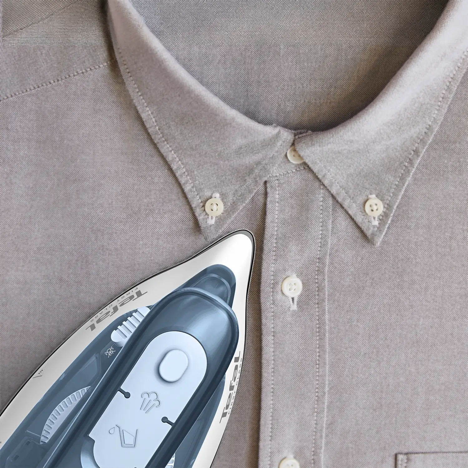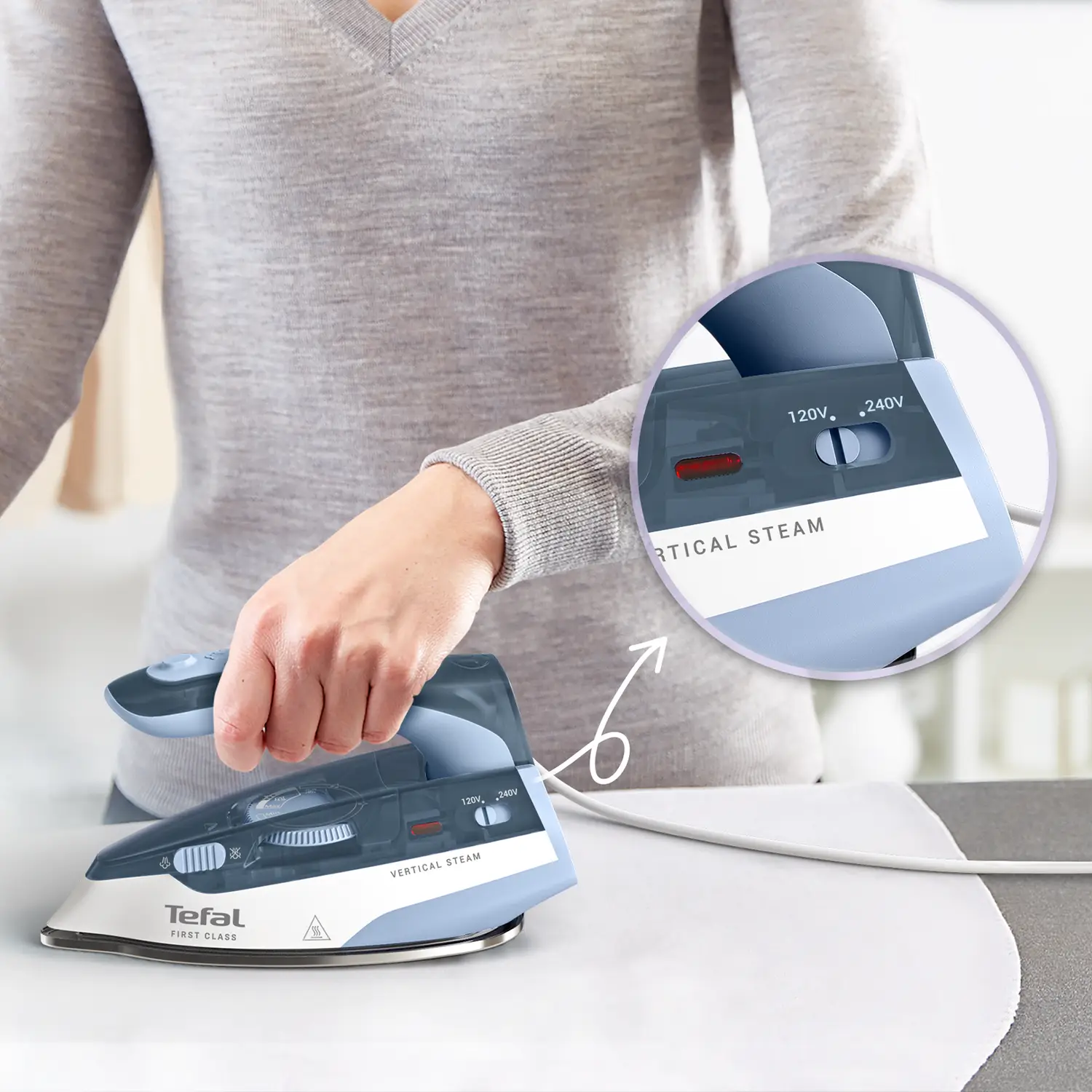 Say hello to your ultimate travel companion: the Tefal First Class Steam Iron. Crafted for modern adventurers, this compact and dependable steam iron ensures impeccable results on the go. With dual voltage for global use, a lightweight build, a foldable handle, and a convenient travel case, it's the ultimate choice for seamless garment care anywhere.