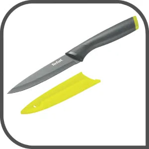 Freshen up your cooking with this Fresh Kitchen 12cm Utility Knife, featuring a high-quality strainless steel blade reinforced with Tefal's titanium reinforced non-stick coating for easy cleaning and durability. Designed with ergonomic soft-grip handles and a vibrant blade cover, this dishwasher-safe knife brings a splash of colour and fun to your everyday cooking, while delivering precision and comfort.