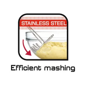 Stainless steel construction ensures durability and strength, allowing for effortless mashing of potatoes.