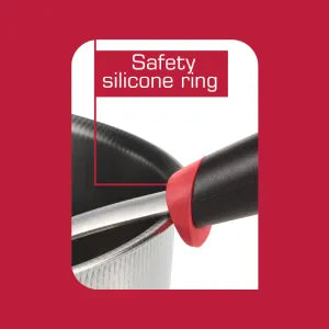 The silicone safety ring provides optimal protection keeping the handle from overheating or slipping into the pan.