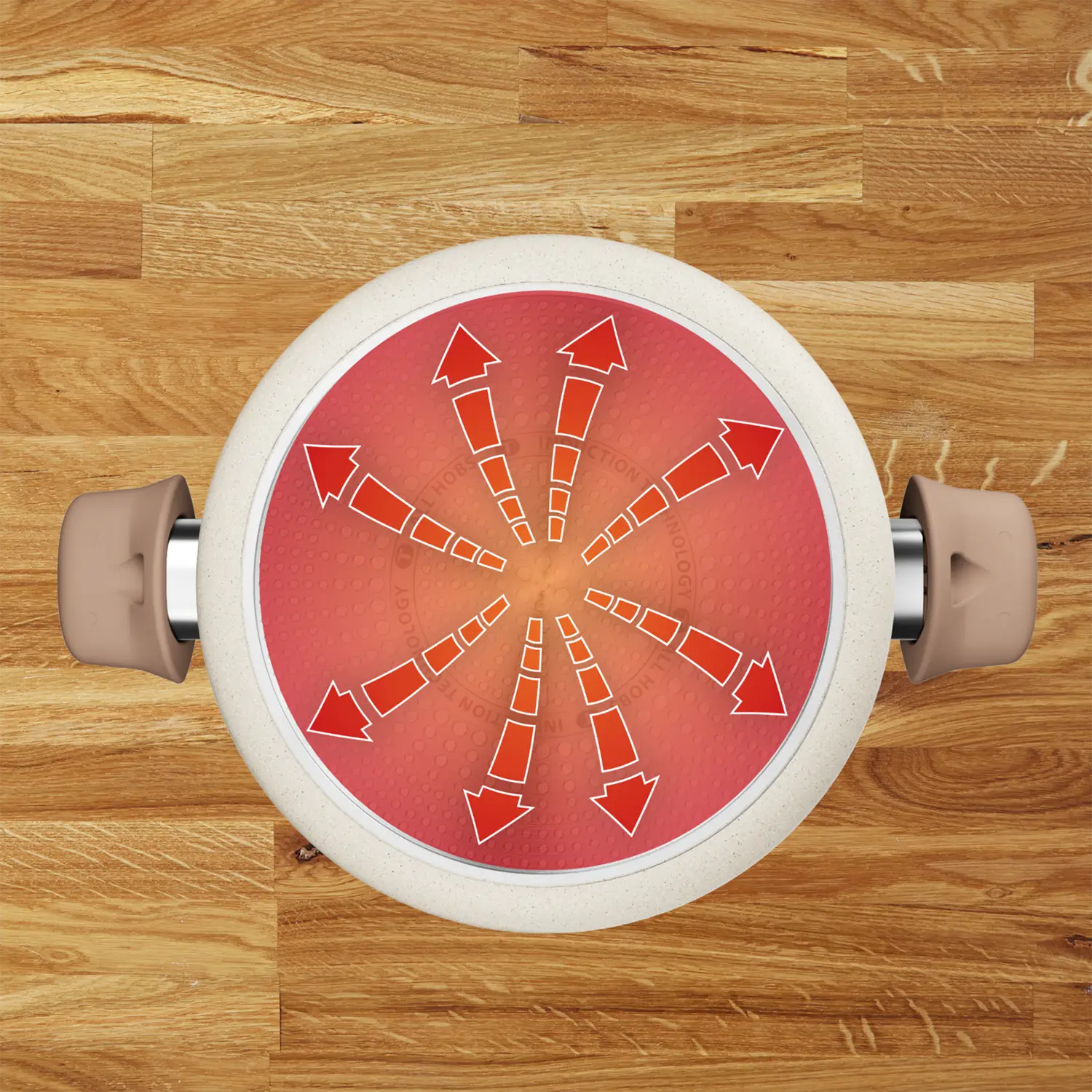 Enjoy fast heating & even cooking results with Tefal's advanced Thermo-Fusion™ induction technology. Compatible with gas, electric, ceramic and induction cooktops.