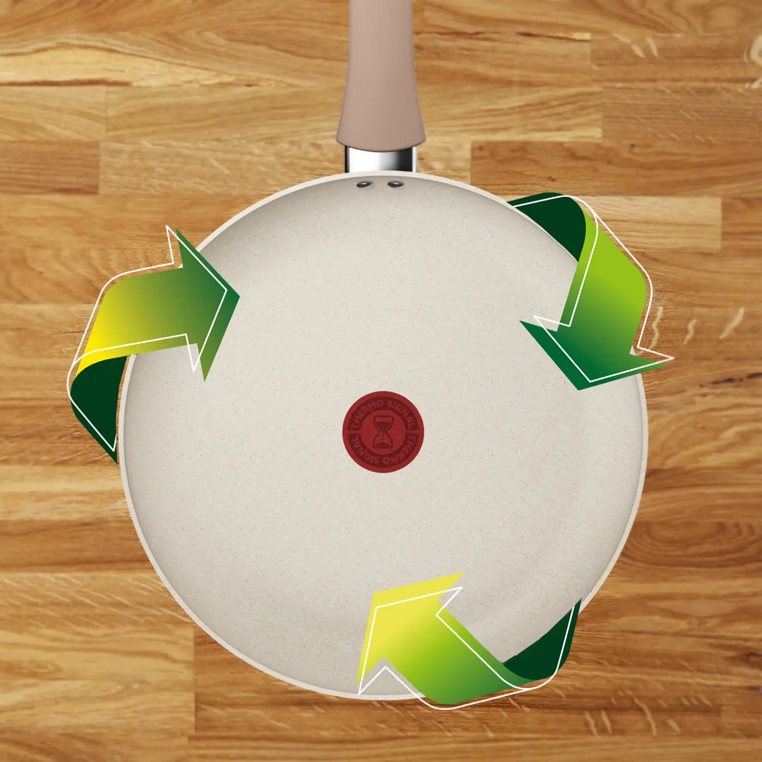 Enhanced Thermo-Signal™ technology turns completely red when the pan has reached the ideal starting temperature, ensuring delicious meals with perfect colour, texture and flavour every time.