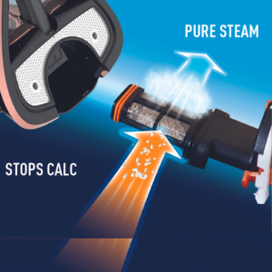 Exclusive 2-in-1 Micro-Calc Filter : delivers 100% filtered steam to stop calc stains on the linen*
