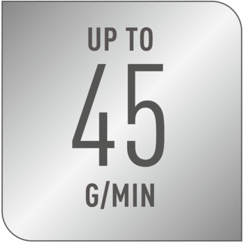 A continuous steam output of up to 45 g/minute. For fast ironing sessions made easy, offering perfect results in no time.